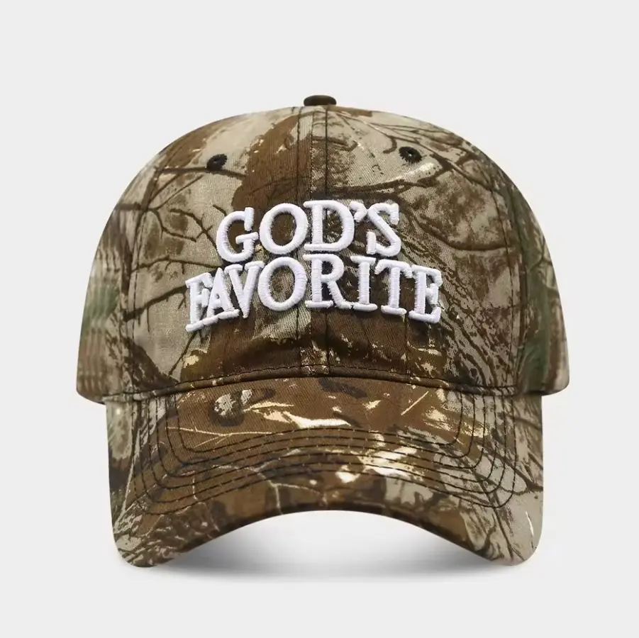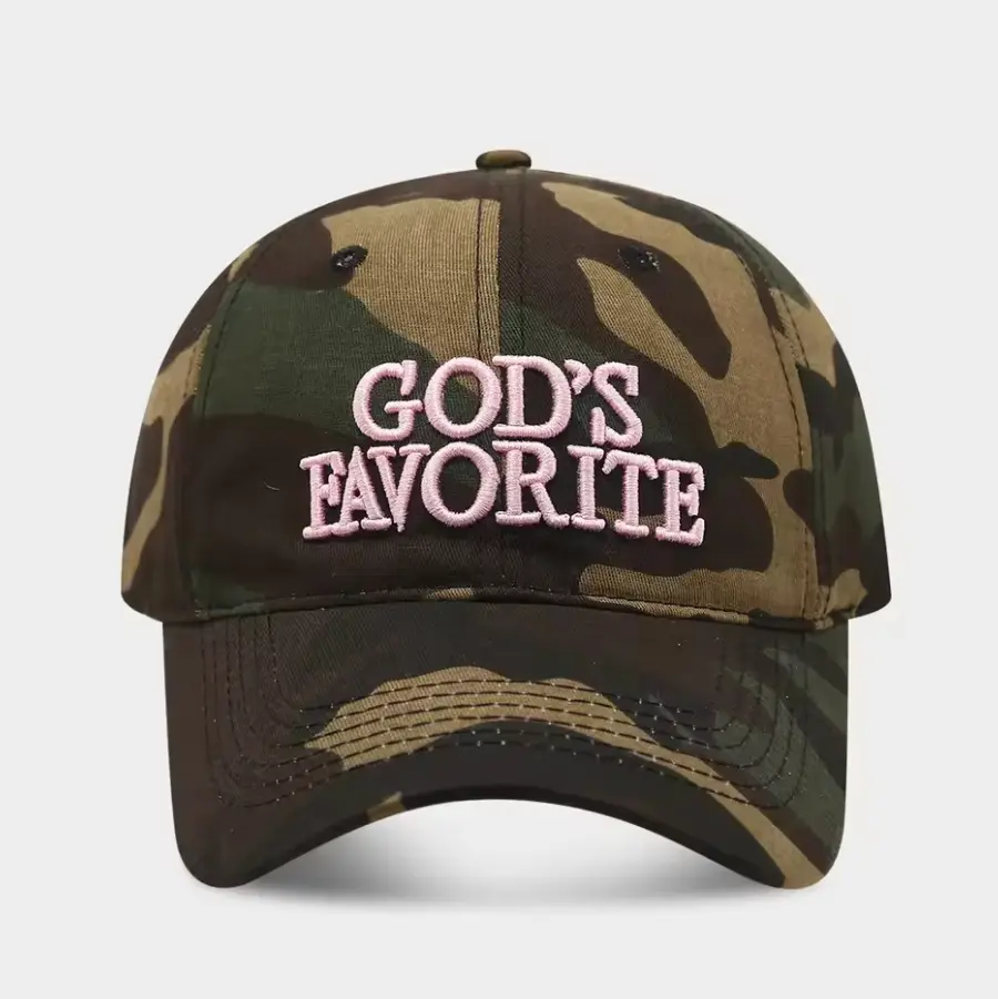 Bold “God’s Favorite” 3D embroidery on the front
