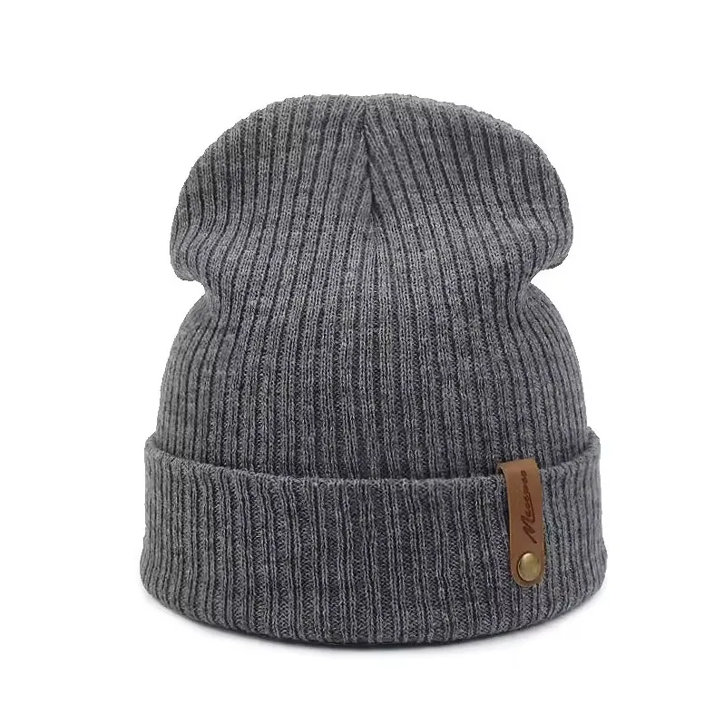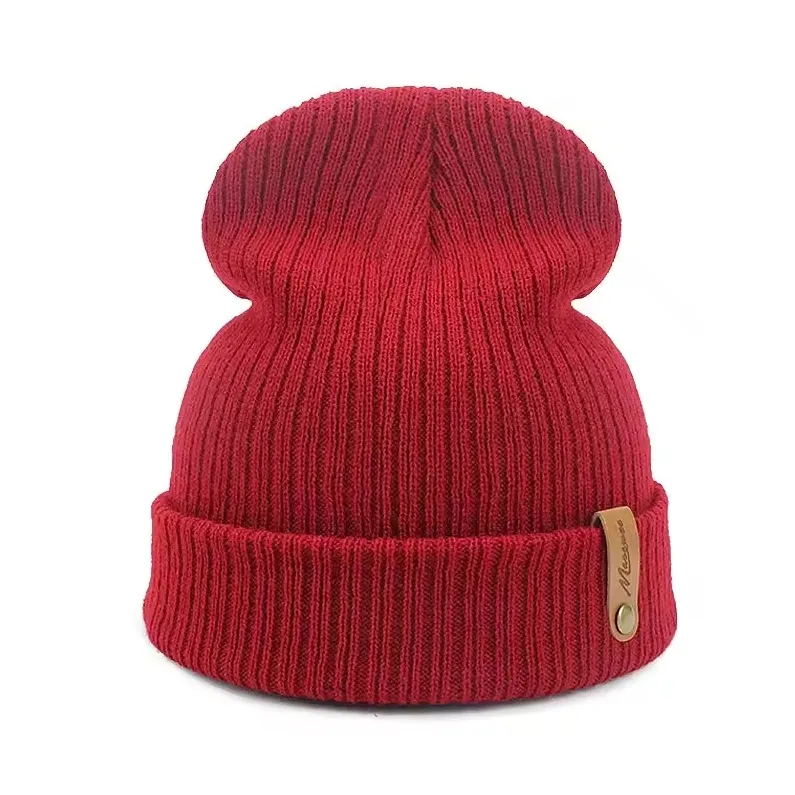 Knitted Hats for Men Women Custom Skullies Caps Leather Patch Winter Warmer Bonnet |