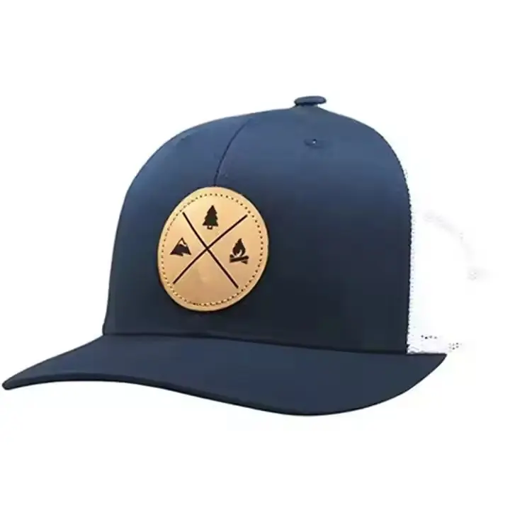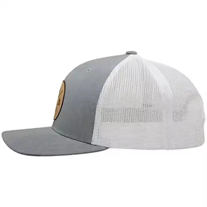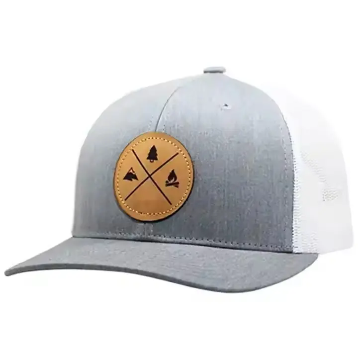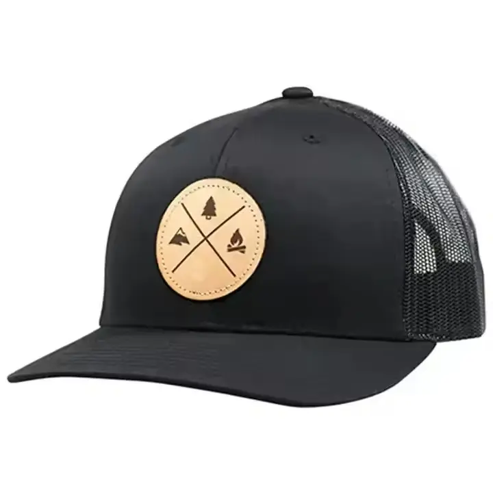 Product Name | Leather Patch Mid Profile Trucker Cap Curve Bill Plastic Snap Back Trucker Hat |