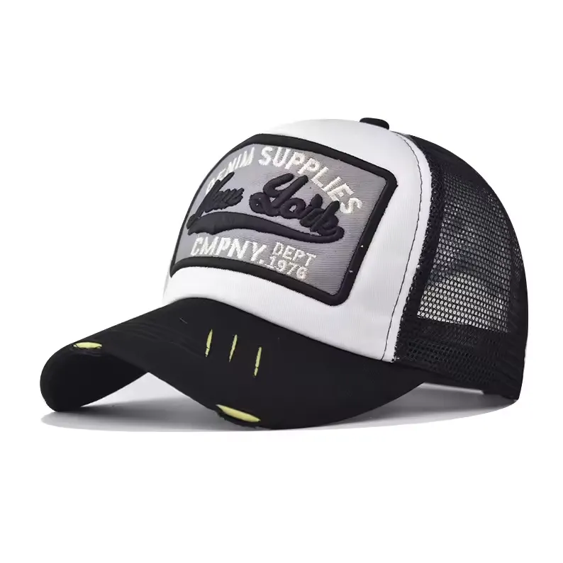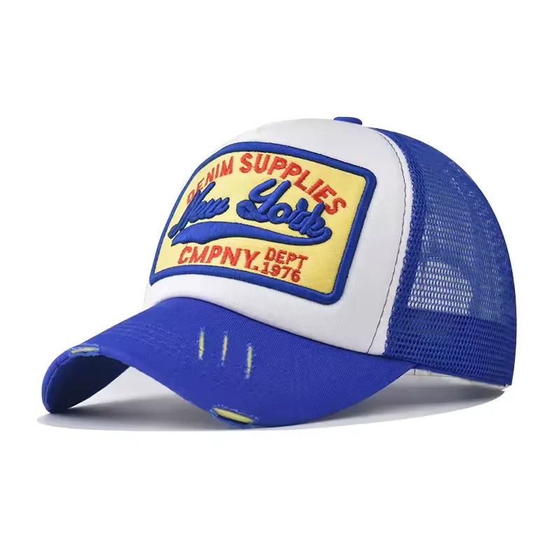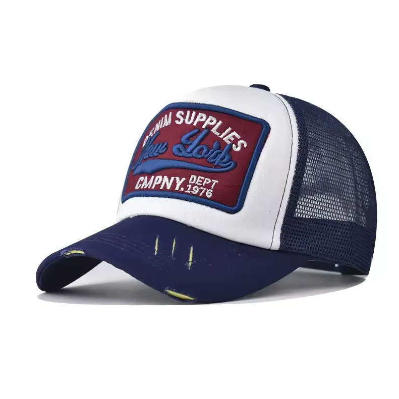 Vintage Trucker Hat Mesh Baseball Cap with Embroidered Patch Adjustable Distressed Trucker Cap